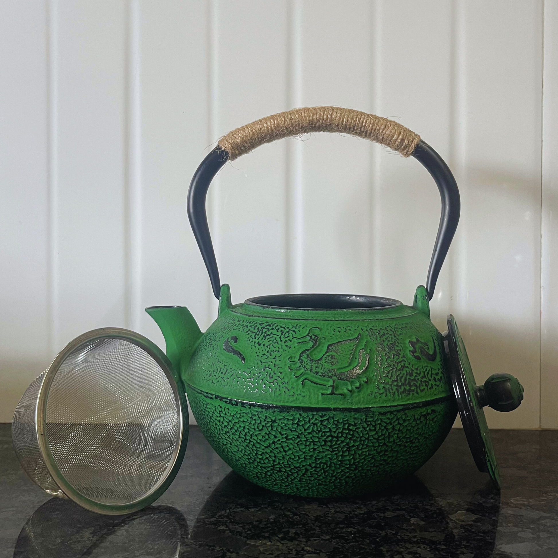 Cast-Iron Hobnail TeaPot - Traditional Japanese Tetsubin (Tetsu-Kyusu) Jade Green Dragon TeaPot 1200ml