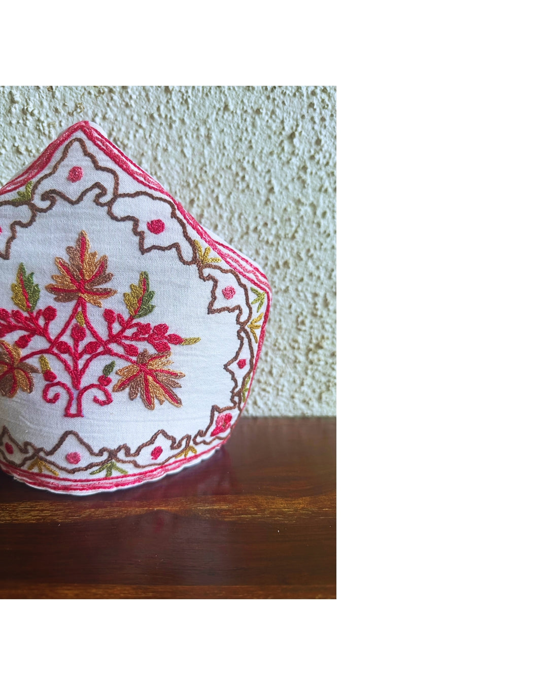 Crafted in pure dusoot cotton and with beautiful Kashmiri chain-stitch embroidery, this handmade traditional tea cosy is beautiful.