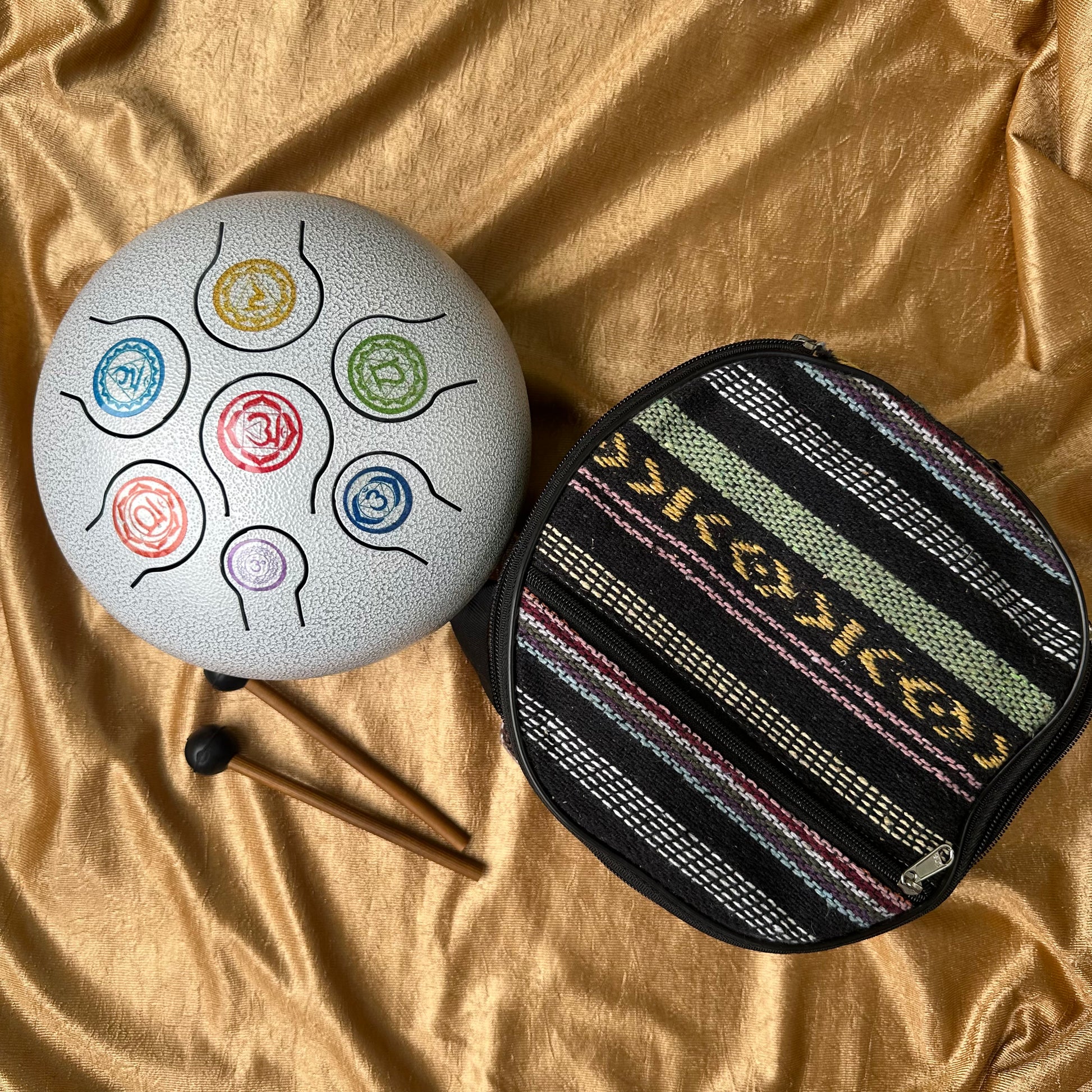 The Happy Drum, also known as a Steel Tongue Drum or Tank Drum, is a beautifully crafted melodic percussion instrument made from high-quality steel. With its soothing, bell-like tones and elegant, minimalist design, the Happy Drum is both a musical instrument and a piece of art. Tuned to a specific musical scale, each tongue (cut-out area on the top surface) produces a rich, resonant note when struck with fingers or soft mallets.