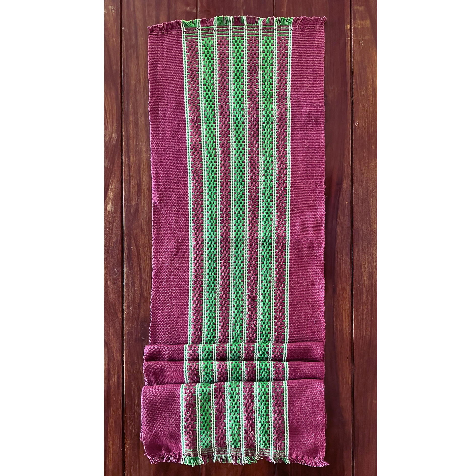Loin Loom Handwoven Table Set: Runner & 6 Table Mats in Maroon & Green