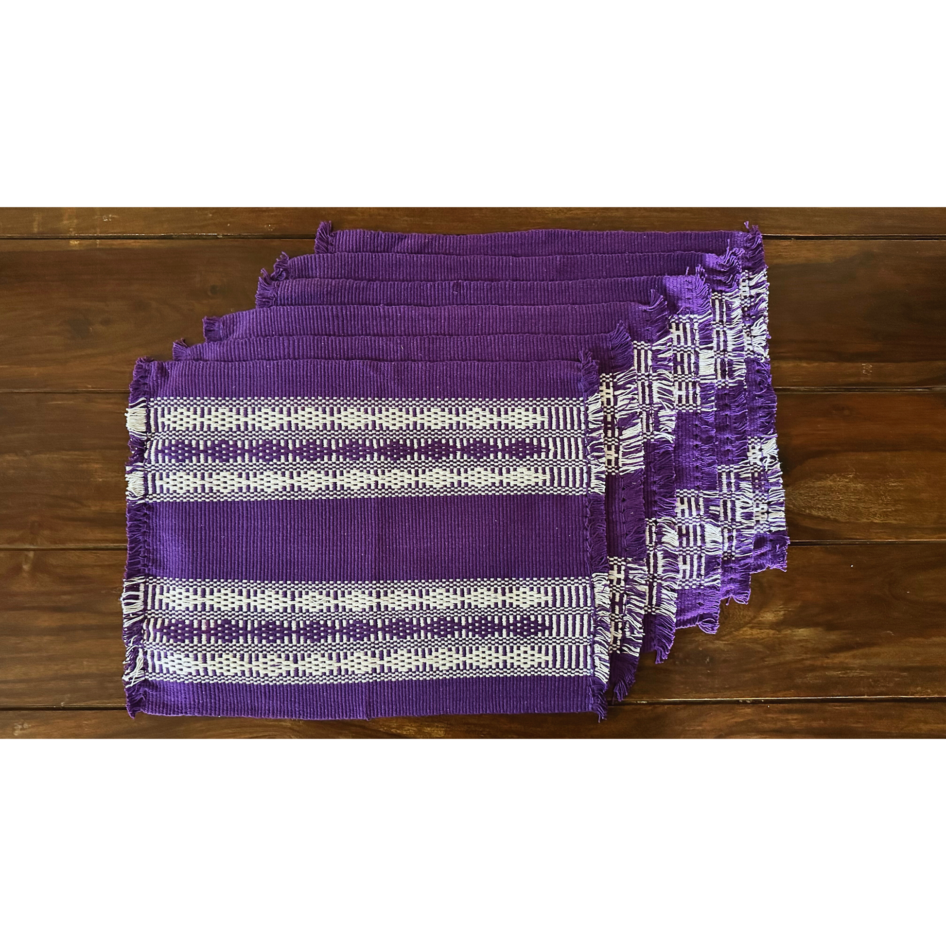 Loin Loom Handwoven Table Set: Runner & 6 Table Mats in Violet & White